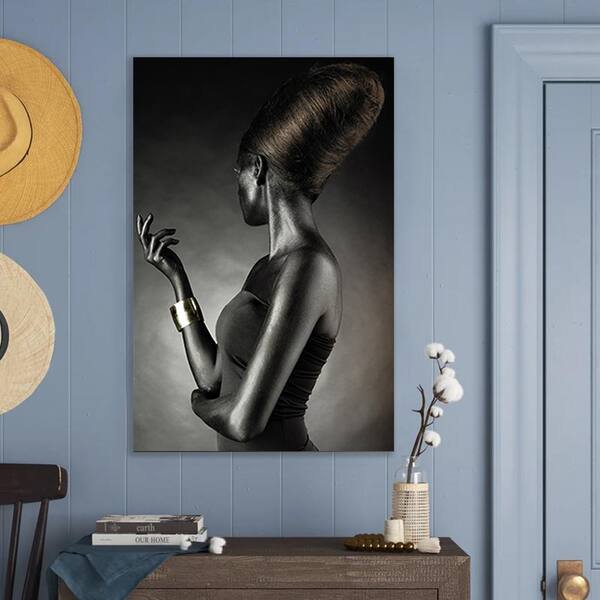 Glamorous Black Series Gray Line Unframed Watercolor Portrait Canvas People Wall Art Print 40 in. x 28 in.