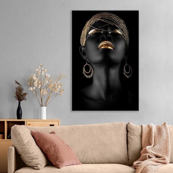 Glamorous Black Series Psychedelic Gold Unframed Watercolor Portrait Canvas People Wall Art Print 30 in. x 20 in.