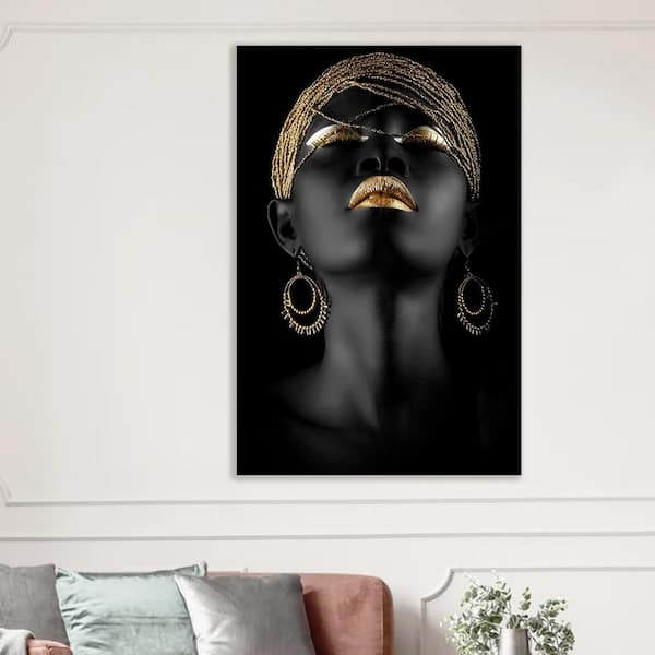 Glamorous Black Series Psychedelic Gold Unframed Watercolor Portrait Canvas People Wall Art Print 48 in. x 36 in.