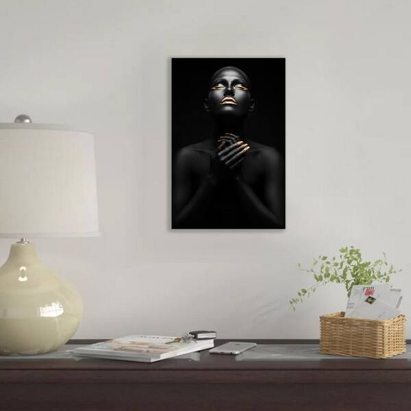 Glamorous Black Series of Closed Eyed Woman Unframed Watercolor Painting Portrait Canvas Wall Art Print 18 in. x 12 in.