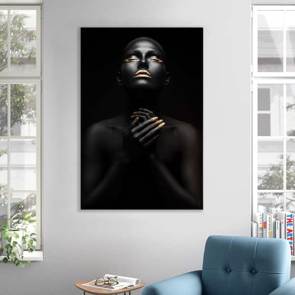Glamorous Black Series of Closed Eyed Woman Unframed Watercolor Painting Portrait Canvas Wall Art Print 40 in. x 28 in.