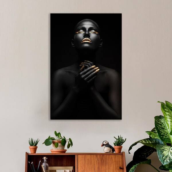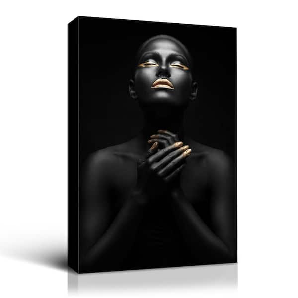 Glamorous Black Series of Closed Eyed Woman Unframed Watercolor Painting Portrait Canvas Wall Art Print 40 in. x 30 in.