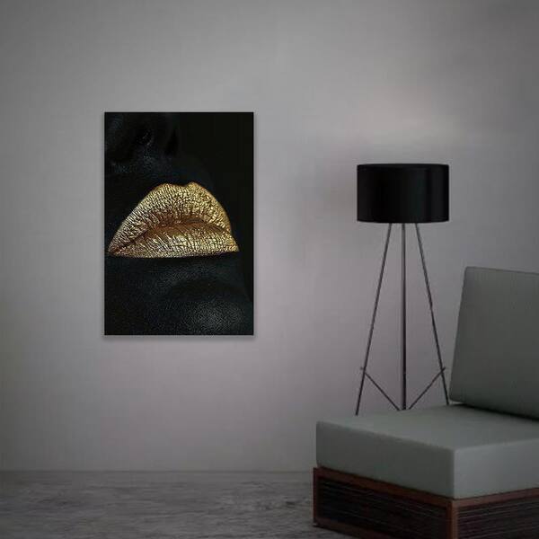 Glamour Black' Mouth Unframed Watercolor Painted Portrait Canvas Wall Art Print 18 in. x 12 in.