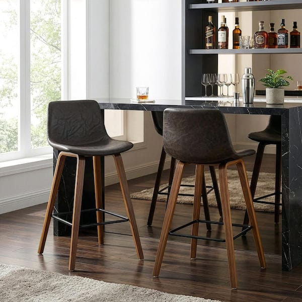 26 in. Alyn Modern Brown with Walnut plywood Legs and Metal Footrest Bar Stool (Set of 2)