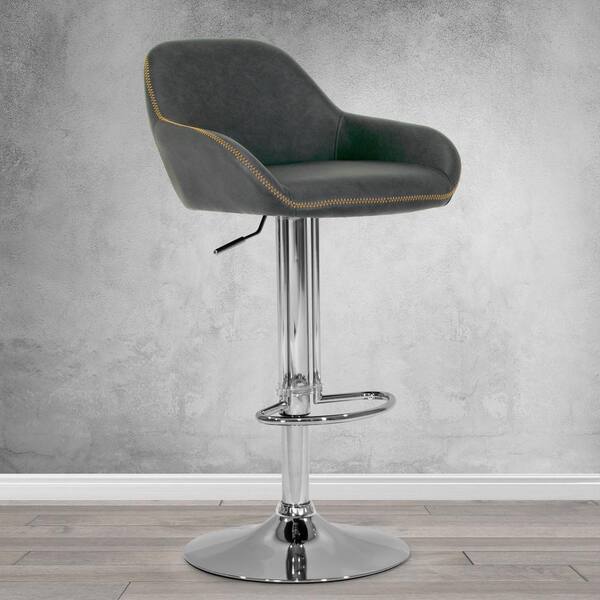 32.75 in. Vintage Grey Color Faux Leather with Contrasting Stitching Alan Adjustable Height Swivel Bar Stool (Set of 2)