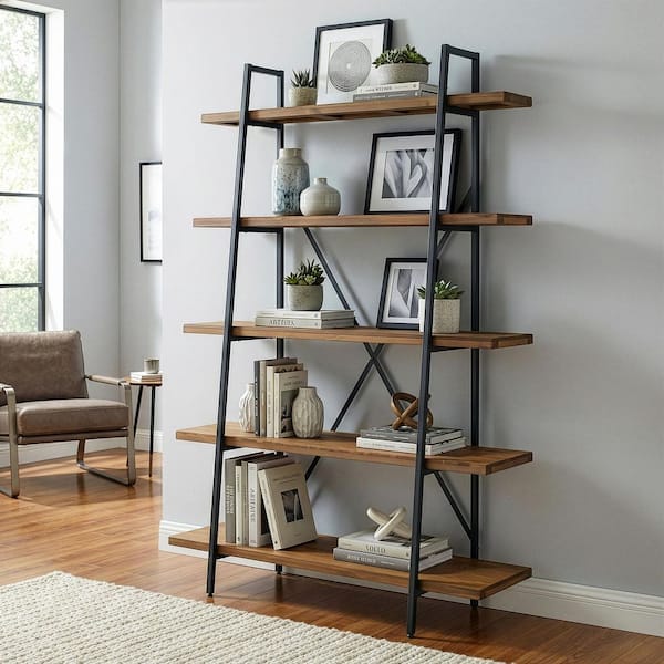 71.5 in. Brown/Black Metal 5-shelf Etagere Bookcase
