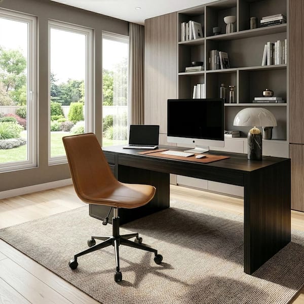 Amery Light Brown Faux Leather Adjustable Height Swivel Office Chair with Wheel Base