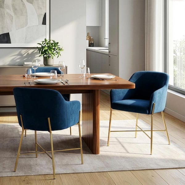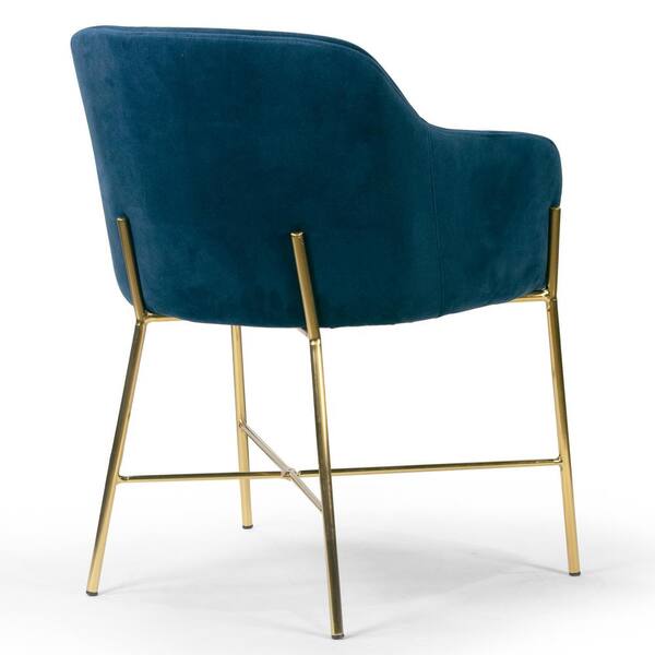 Ana Blue Velvet Arm Dining Chair with Golden Metal Legs