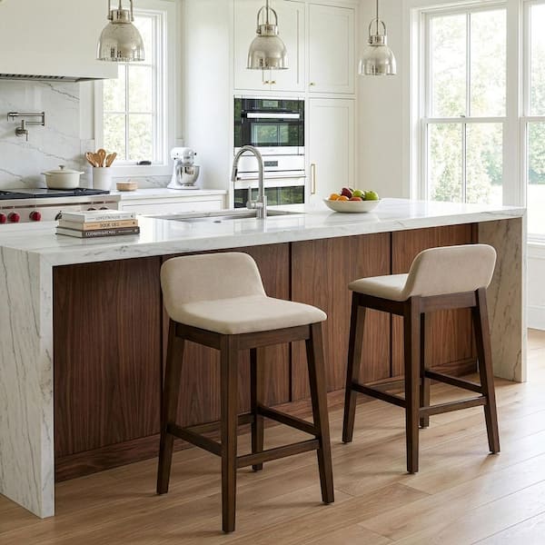 Atia 25 in. Dark Brown Rubberwood Bar Stool with Low Back Seat Height (Set of 2)