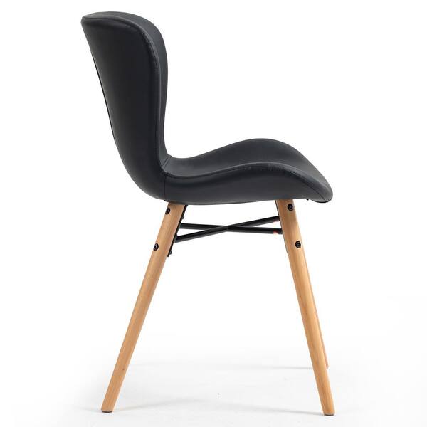 Banks Black Faux Leather Dining Chair with Wood Legs Set of 2
