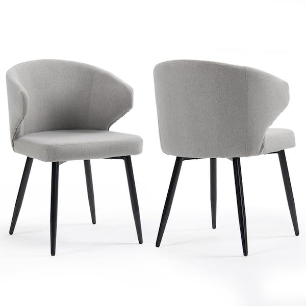 Bard Gray Fabric Dining Chair with Black Iron Legs Set of 2