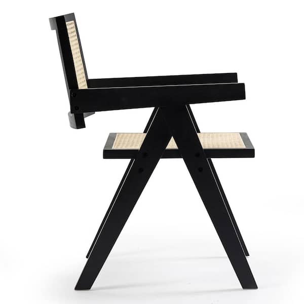 Bardot Black Wooden Dining Chair with Rattan Back Set of 2