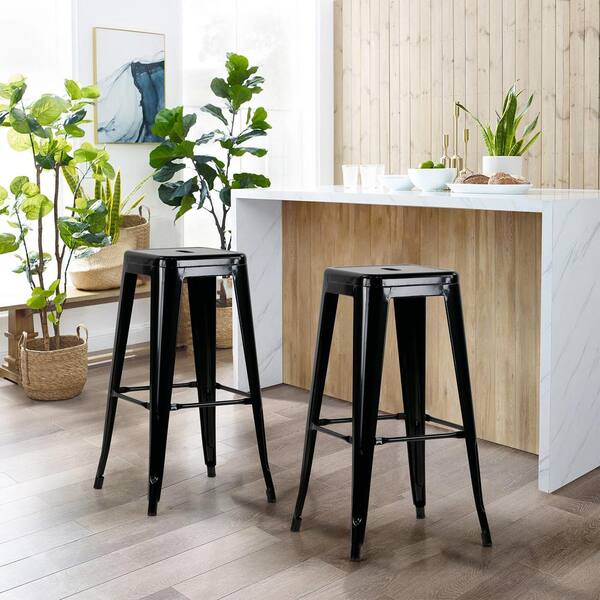 Barton 30 in. Black Backless Metal Bar Stool 2 (Set of Included)