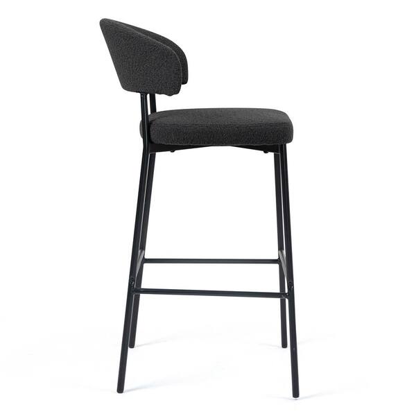 Bennett Black Boucle Upholstered Fabric Bar Stool with Black Iron Legs, Set of 2