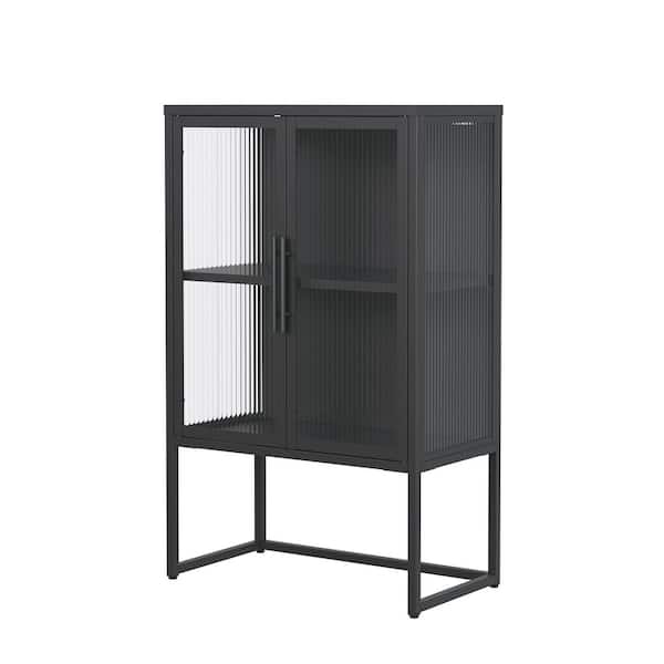 Benvolio 41.34 in. Tall" Black Steel 2-Shelf 2-Door Storage Cabinet Bookcase with Fluted Clear Doors