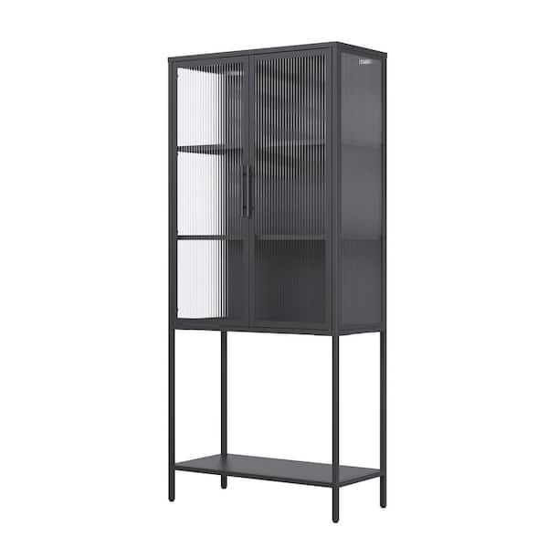 Benvolio 70.87 in. Tall" Black Steel 3-Shelf 2-Door Storage Cabinet Bookcase with Fluted Clear Doors