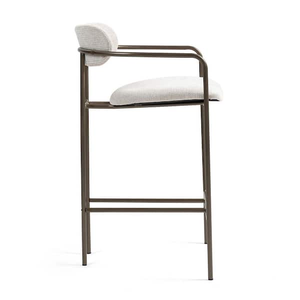 Berker Beige Woven Upholstered Fabric Counter Stool, Set of 2