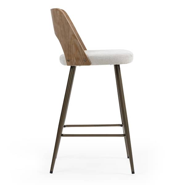Bethan Beige Washed Boucle Fabric Counter Stool with White Washed Wood Back and Black Iron Legs (Set of 2)