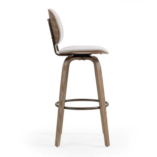 Betrys Beige Washed Woven Fabric Swivel Bar Stool with White Washed Wood Legs (Set of 2)
