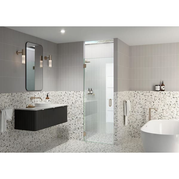 26.25 in. W x 78 in. H Pivot/Hinged Frameless Shower Door in Brushed Bronze-Door Only-Width Adj 26.625-27.025
