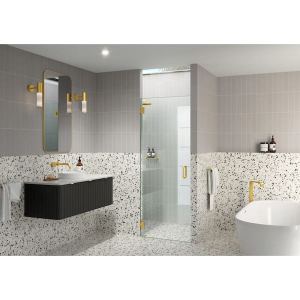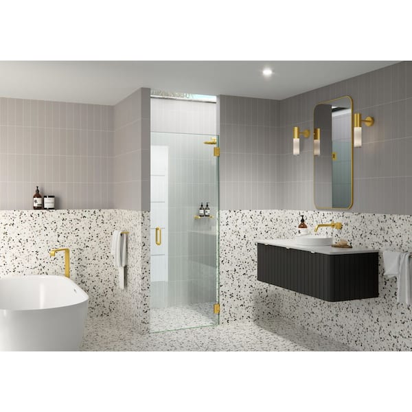 29.75 in. W x 78 in. H Pivot/Hinged Frameless Shower Door in Satin Brass - Door Only - Width Adj 30.125 - 30.525