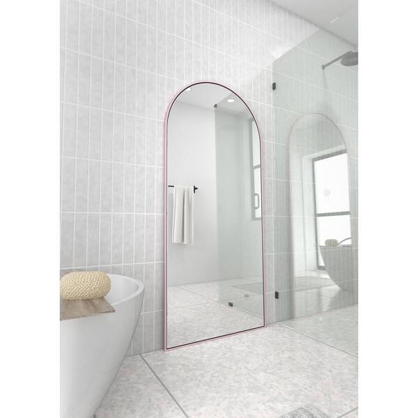 30 in. x 67 in. Arch Leaner Dressing Stainless Steel Framed Wall Mirror in Pink
