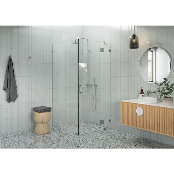 34 in. W x 38 in. D x 78 in. H Pivot Frameless Corner Shower Enclosure in Polished Chrome Finish with Clear Glass
