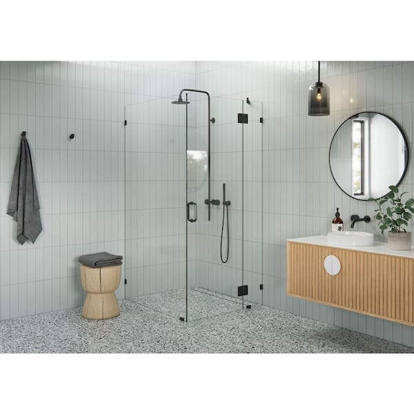 34 in. W x 39 in. D x 78 in. H Pivot Frameless Corner Shower Enclosure in Matte Black Finish with Clear Glass
