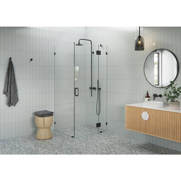 36 in. W x 33 in. D x 78 in. H Pivot Frameless Corner Shower Enclosure in Matte Black Finish with Clear Glass