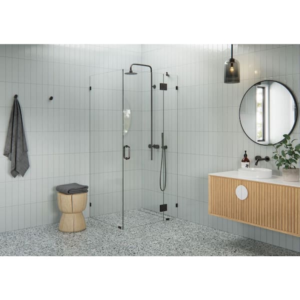 37 in. W x 32 in. D x 78 in. H Pivot Frameless Corner Shower Enclosure in Oil Rubbed Bronze Finish with Clear Glass