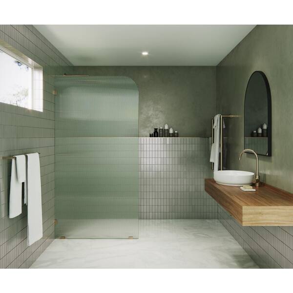 38 in. x 78 in. Frameless Shower Door Single Fixed Panel Fluted Frosted Radius Left Hand