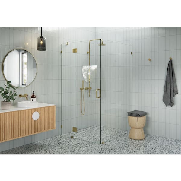 40 in. W x 46 in. D x 78 in. H Pivot Frameless Corner Shower Enclosure in Polished Brass Finish with Clear Glass