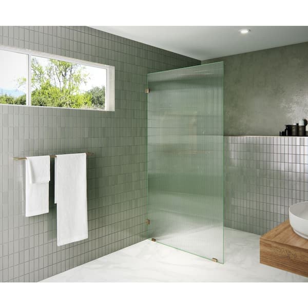 40 in. W x 78 in. H Fixed Single Panel Frameless Shower Door in Brushed Bronze with Fluted Frosted Glass