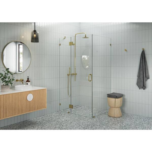 41 in. W x 36 in. D x 78 in. H Pivot Frameless Corner Shower Enclosure in Polished Brass Finish with Clear Glass