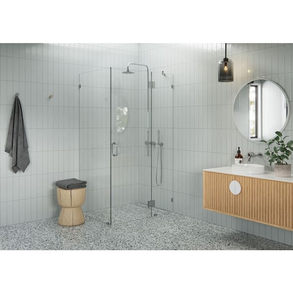 43 in. W x 32 in. D x 78 in. H Pivot Frameless Corner Shower Enclosure in Polished Chrome Finish with Clear Glass