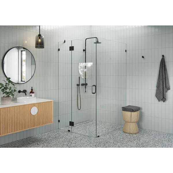 43 in. W x 46 in. D x 78 in. H Pivot Frameless Corner Shower Enclosure in Matte Black Finish with Clear Glass
