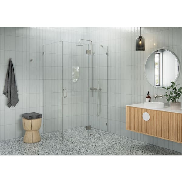 46 in. W x 33 in. D x 78 in. H Pivot Frameless Corner Shower Enclosure in Brushed Nickel Finish with Clear Glass
