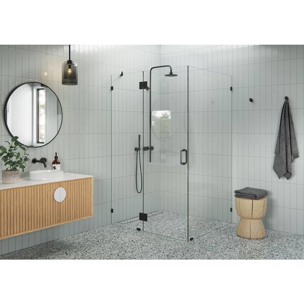 46 in. W x 42 in. D x 78 in. H Pivot Frameless Corner Shower Enclosure in Matte Black Finish with Clear Glass