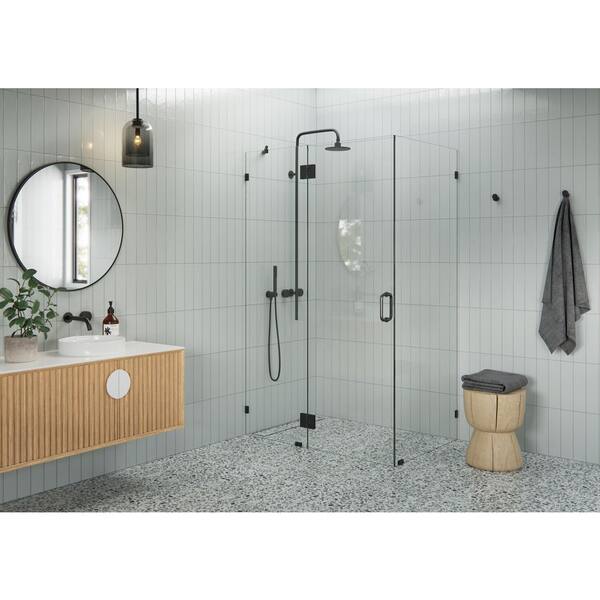 47 in. W x 32 in. D x 78 in. H Pivot Frameless Corner Shower Enclosure in Matte Black Finish with Clear Glass
