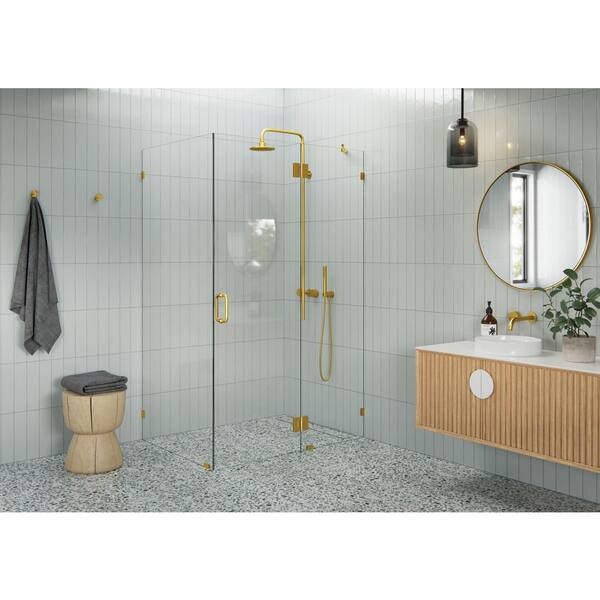 47 in. W x 37 in. D x 78 in. H Pivot Frameless Corner Shower Enclosure in Satin Brass Finish with Clear Glass