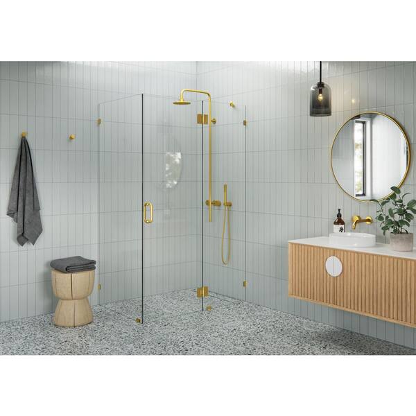 47 in. W x 47 in. D x 78 in. H Pivot Frameless Corner Shower Enclosure in Satin Brass Finish with Clear Glass