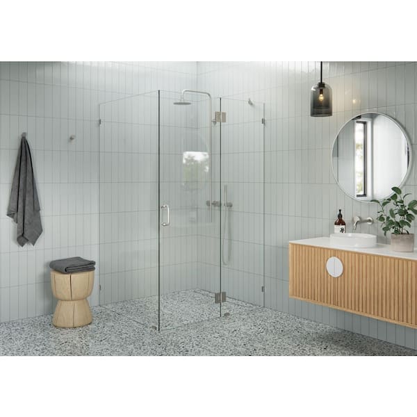 49 in. W x 41 in. D x 78 in. H Pivot Frameless Corner Shower Enclosure in Brushed Nickel Finish with Clear Glass
