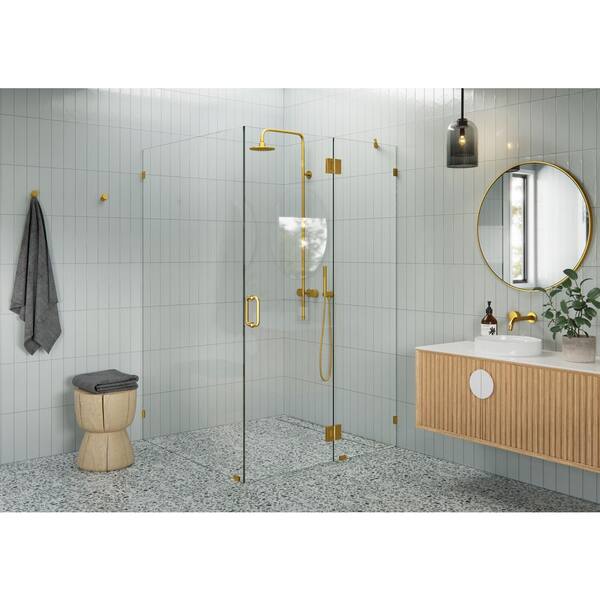 49 in. W x 48 in. D x 78 in. H Pivot Frameless Corner Shower Enclosure in Satin Brass Finish with Clear Glass