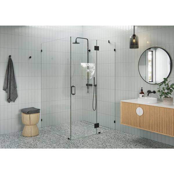51 in. W x 48 in. D x 78 in. H Pivot Frameless Corner Shower Enclosure in Matte Black Finish with Clear Glass
