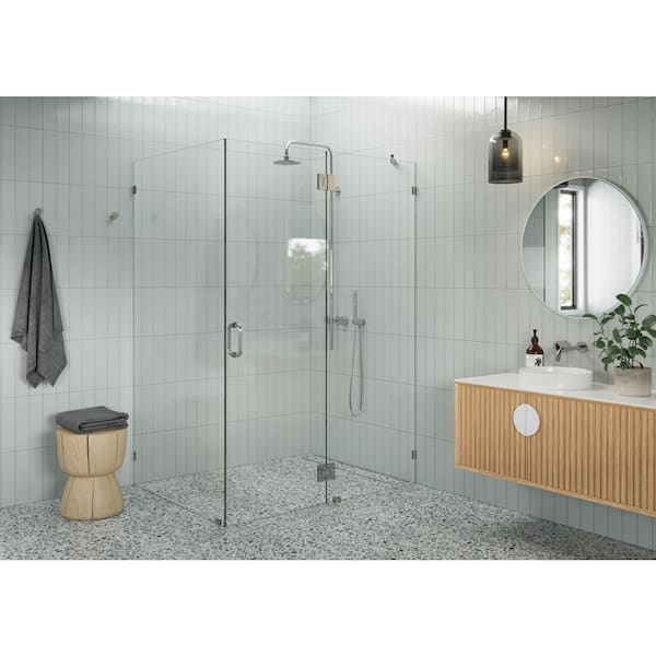 52 in. W x 41 in. D x 78 in. H Pivot Frameless Corner Shower Enclosure in Polished Chrome Finish with Clear Glass