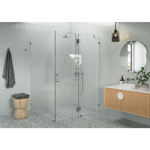 53 in. W x 47 in. D x 78 in. H Pivot Frameless Corner Shower Enclosure in Polished Chrome Finish with Clear Glass