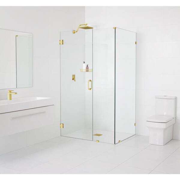 54 in. W x 48.5 in. D x 78 in. H Pivot Frameless Corner Shower Enclosure in Polished Brass Finish with Clear Glass