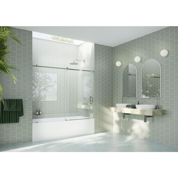 72 in. W x 60 in. H Sliding Frameless Shower Door/Enclosure in Chrome Finish with Clear Glass
