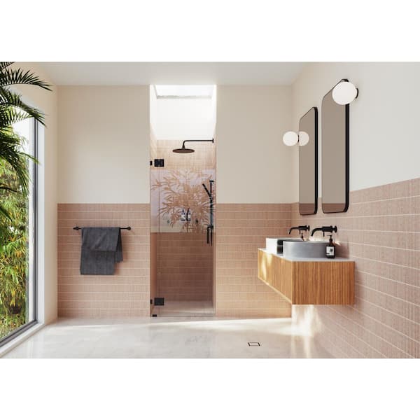 Halo 31 in. W x 78 in. H Glass Hinged Frameless Shower Door in Matte Black with Clear Glass