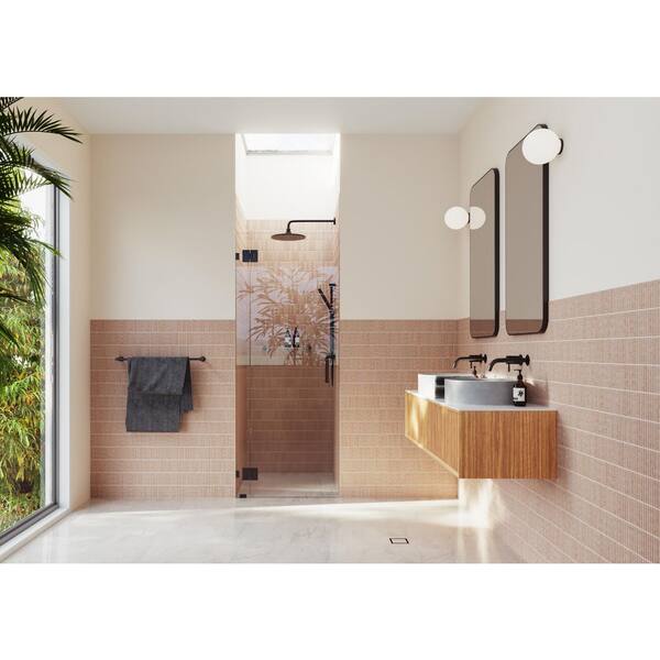 Halo 33.5 in. W x 78 in. H Glass Hinged Frameless Shower Door in Oil Rubbed Bronze with Clear Glass